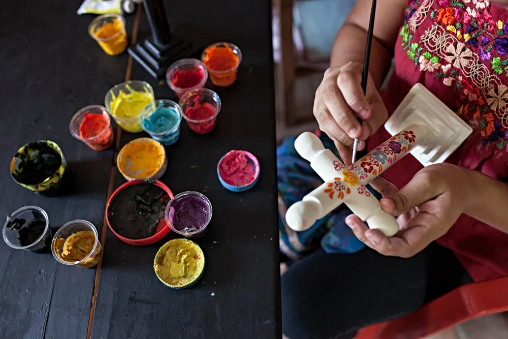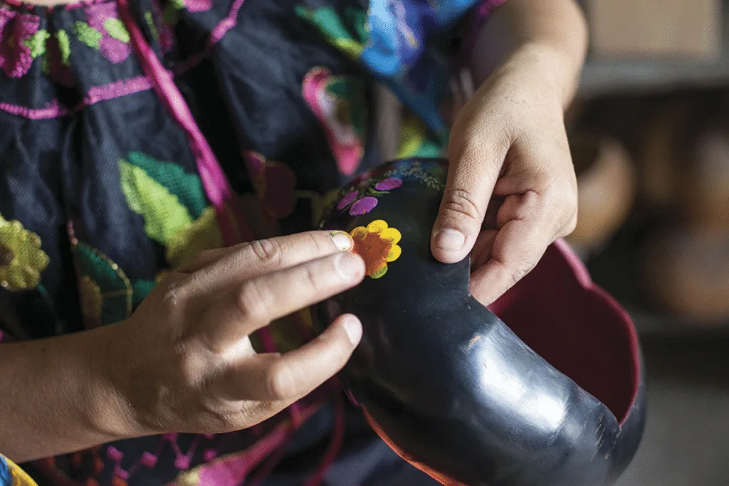 Allí también se mantiene viva la elaboración de laca tradicional, un arte refinado que decora jícaras, máscaras y objetos cotidianos con colores vivos y símbolos ancestrales. Y para quienes vibran con la música, los hermanos Nandayapa abren las puertas de la tradición sonora: la marimba, alma sonora de Chiapas, se construye y aprende en talleres donde la madera canta.