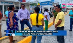 Alcalde de Jalpa de Méndez Chepe Olán junto con el H. Ayuntamiento de Jalpa de Méndez 2024-2027 presentan avances de obra en Calle Primera Constitución.