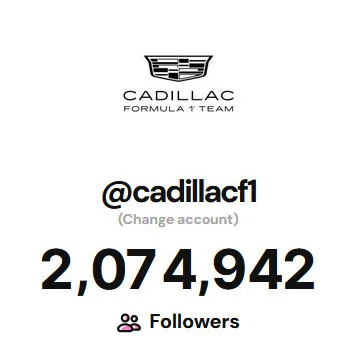 Para la mañana del miércoles, el perfil de Cadillac F1 ya superaba los 1.8 millones de seguidores, y al llegar las 19:00 horas, había cruzado la marca de los 2 millones. Este jueves por la mañana, Blastup, plataforma que da seguimiento en tiempo real a estadísticas de redes sociales, reportó que la cifra alcanzaba los 2,075,461 seguidores.