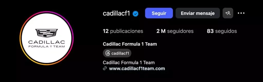 El piloto mexicano Sergio “Checo” Pérez aumentó el perfil de Instagram del Cadillac Formula 1 Team, duplicando sus seguidores en dos días.