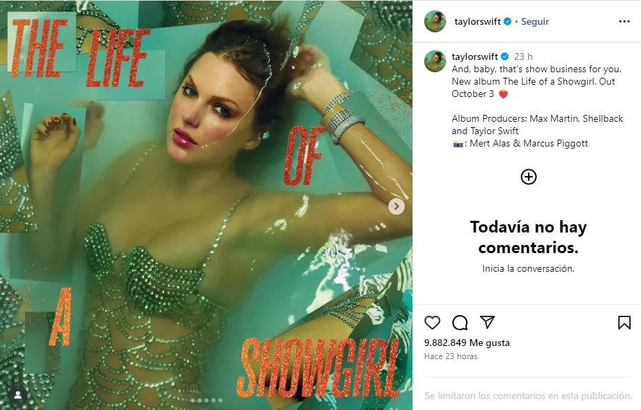 “Y, cariño, así es el mundo del espectáculo. Nuevo álbum ‘The Life of a Showgirl’. A la venta el 3 de octubre”, escribió Swift en su cuenta de Instagram, desatando furor entre sus fans.