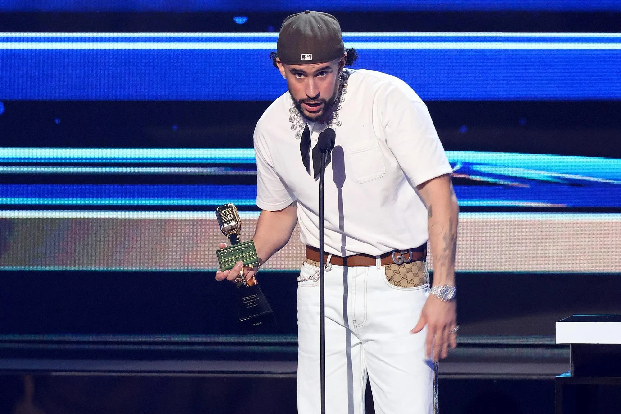 A pesar de haber llegado a la gala como el artista más nominado (con 27 candidaturas), Bad Bunny, cuyo nombre real es Benito Martínez Ocasio, confesó en el escenario que no había preparado un discurso porque “genuinamente no comprendo porqué soy yo el que está aquí”.