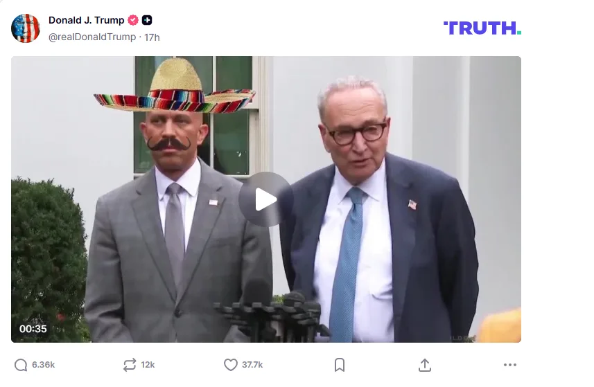 Usa IA y Sombrero Mexicano: Trump Se Burla de Hakeem Jeffries en Plena Crisis de Cierre de Gobierno