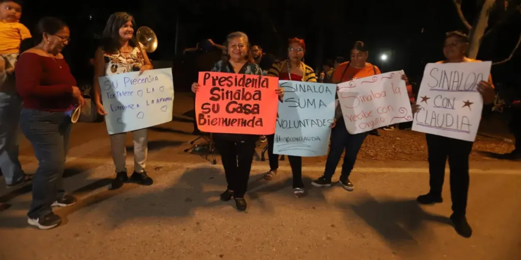 Decenas de personas se congregaron en las inmediaciones del aeropuerto para observar la llegada de la mandataria federal. Algunos con pancartas y mensajes de apoyo, lo que generó un ambiente de expectativa y acompañamiento popular durante su paso por la zona.