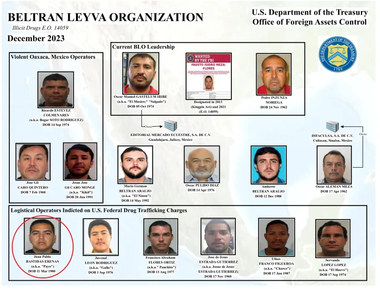 - Según investigaciones, trabajaba bajo las órdenes de “El Músico” (Óscar Manuel Gastélum) y “Chapo Isidro” (Fausto Isidro Meza Flores), ambos líderes activos del cártel y sancionados por el Departamento del Tesoro de EE.UU.