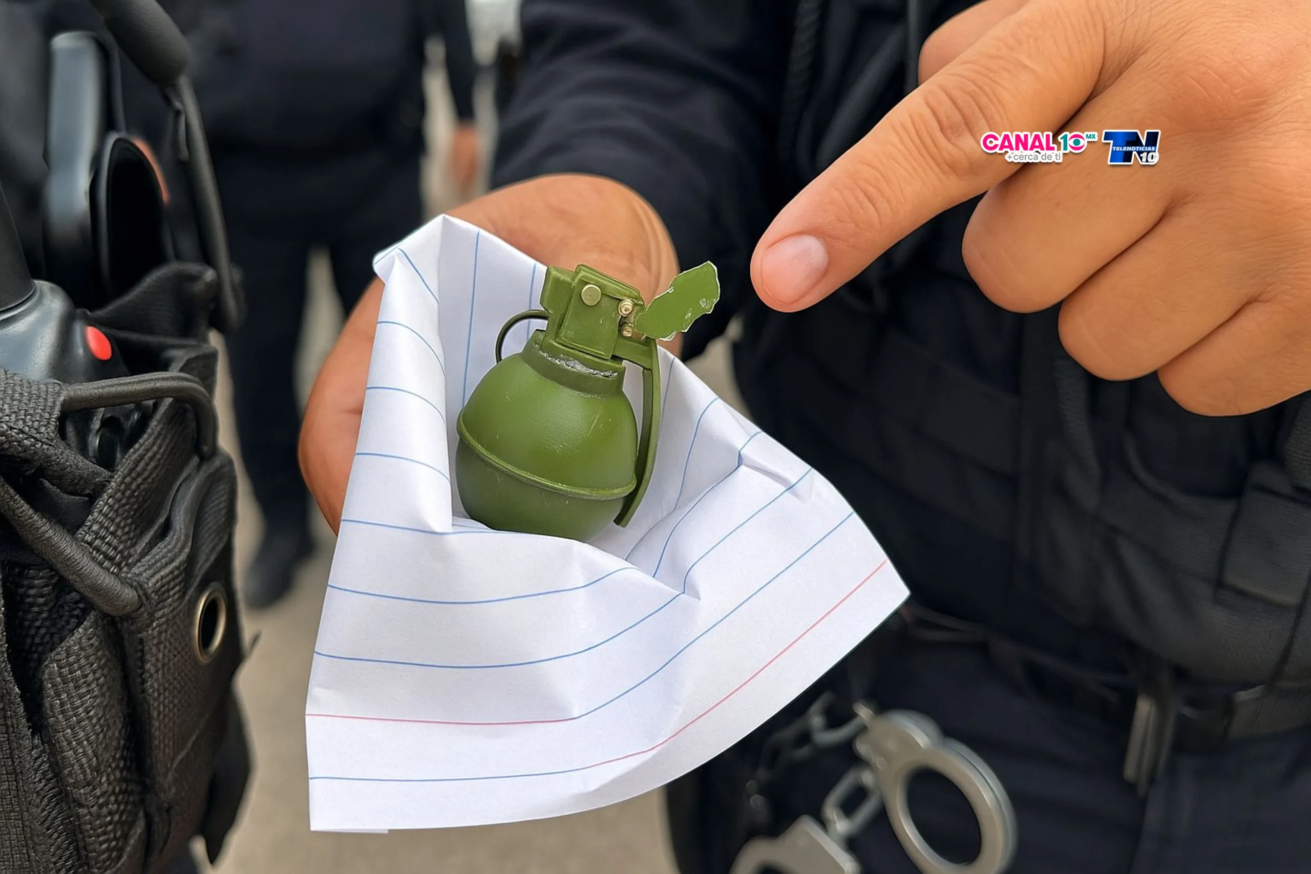 Los uniformados se trasladaron de inmediato hasta la calle Marcelino García Barragán, casi esquina con la calle Progreso, a unos metros de la Escuela Primaria 16 de Septiembre, a unos metros de la banqueta observaron la supuesta Granada color verde, la verificaron y notaron los elementos que se trataba de un juguete.