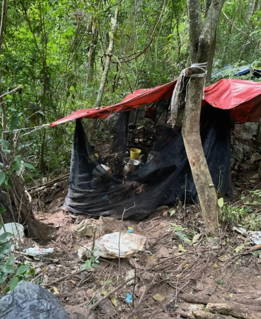 El campamento que fue asegurado se logró ubicar por la parte trasera del cerro en la comunidad de Guadalupe Victoria situada casi más de 50 kilómetros de la Capital del Estado de Tabasco, presuntamente las línea de investigación esta guarida de criminales era de quienes habrían atacado a elementos de la Policía Municipal y Guardia Nacional la semana pasada, las autoridades continúan realizando operativos en Macuspana con drones y vigilancias para dar con más sitios de delincuentes que lograron huir después de la emboscada que dejó 1 elemento de la GN herido y 3 detenidos.