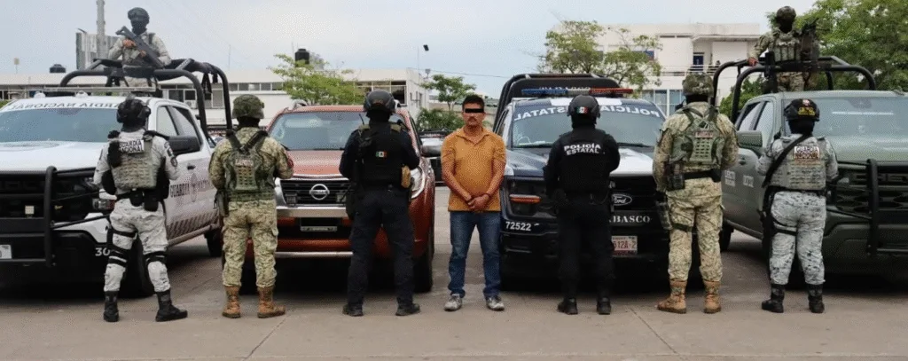 La Secretaría de Seguridad y Protección Ciudadana de Tabasco, junto con la Fuerza Interinstitucional de Reacción Táctica, detuvo a un hombre por su posible participación en el robo de un vehículo.