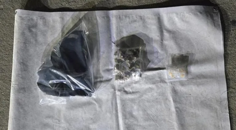 Al momento de la revisión preventiva, los agentes aseguraron entre las pertenencias del individuo dosis de hierba verde seca con características similares a la marihuana, dosis de sustancia sólida transparente con características propias de la piedra, así como una mochila color negra. También se le aseguró una motocicleta marca Italika, línea 125 FT, color azul, con placas del estado de Tabasco.