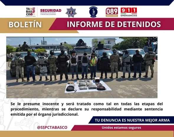 Las personas detenidas y lo asegurado fueron puestos a disposición de la autoridad competente para el seguimiento de las investigaciones correspondientes, garantizando en todo momento el respeto a los derechos humanos y al debido proceso.