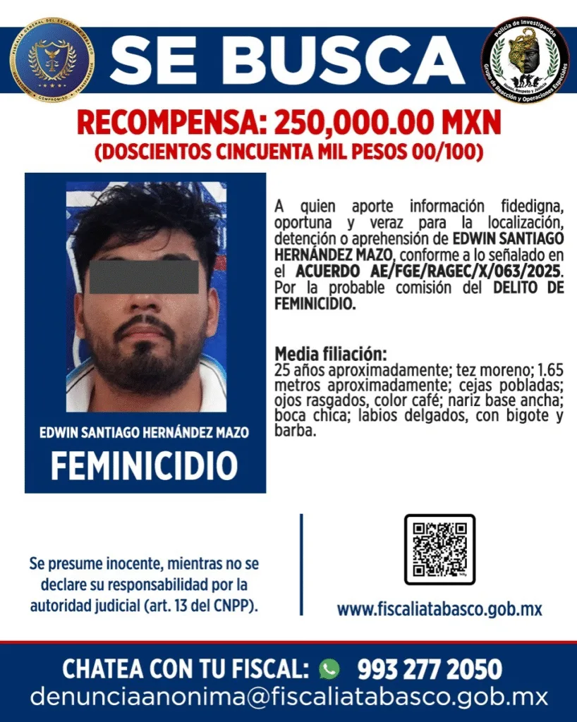 Señalan a Edwin “N” como responsable de provocar la muerte de Mariana “N” en Cunduacán. Los hechos relatan que el 26 de noviembre la joven murió tras accidentarse en su motoneta. El suceso ocurrió durante una persecución, luego de que su pareja la agrediera en una fiesta en su departamento.