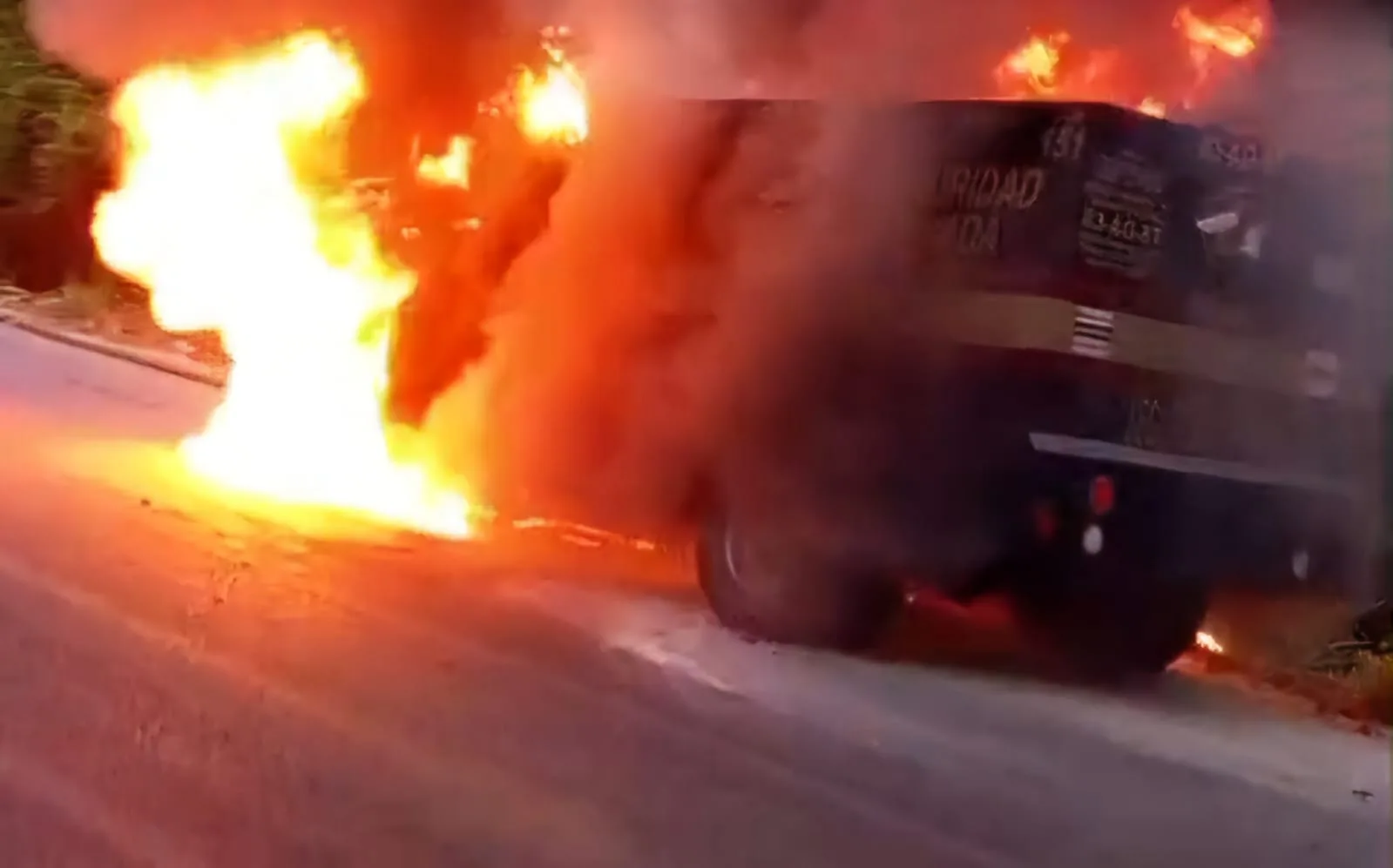 Una camioneta de valores se incendió en la carretera Portón – Ciudad Pemex por un cortocircuito. Los tripulantes evacuaron y aseguraron el dinero transportado antes de la movilización de autoridades.