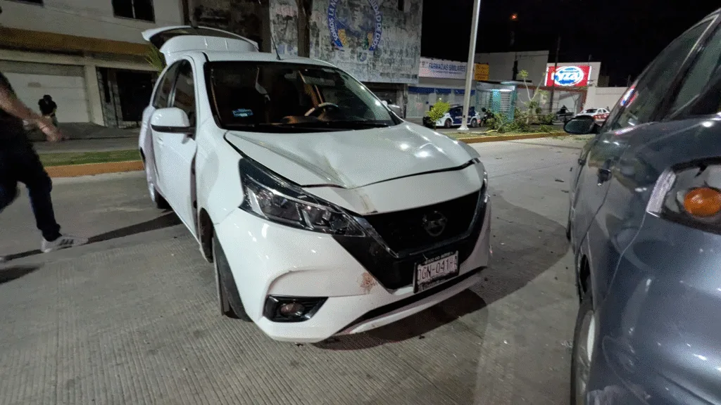 Según testigos que presenciaron el siniestro, la conductora de un vehículo Nissan March, color blanco, con placas de circulación DGN-041-A del Estado de Campeche, se desplazaba a exceso de velocidad sobre la ampliación de la 56 con dirección hacia la glorieta del camarón. Fue justo en la curva ubicada en esa intersección donde, presuntamente, perdió el control del automóvil, lo que provocó que se subiera al camellón central y posteriormente se impactara contra dos vehículos que se encontraban estacionados.
