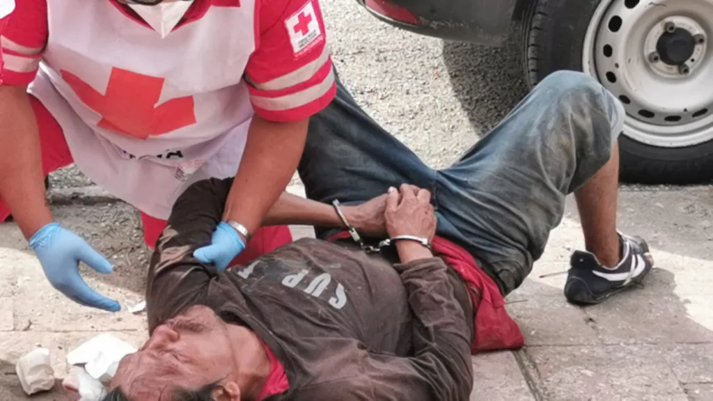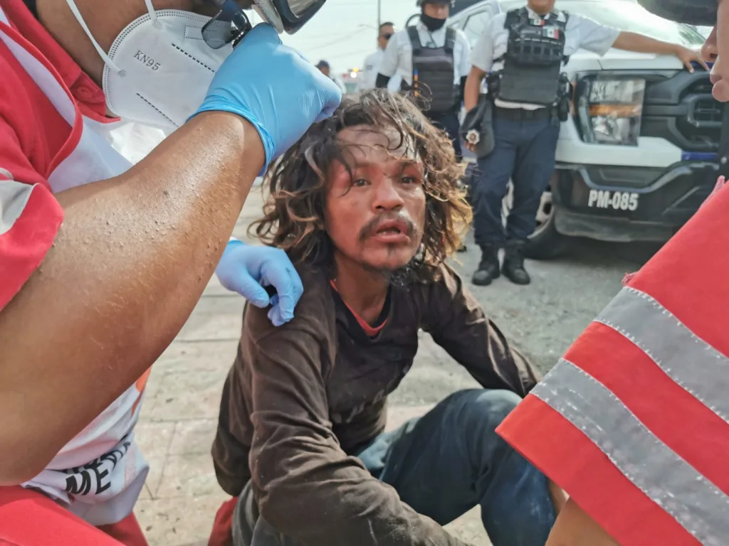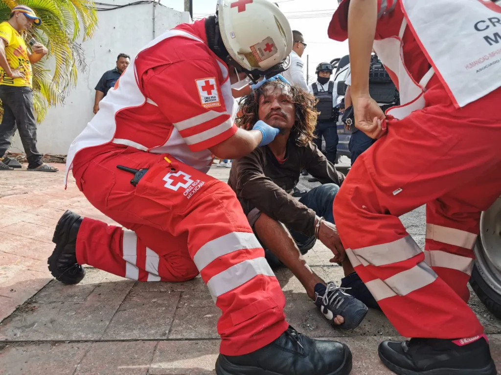 Durante la persecución, el sujeto resbaló sobre el pavimento y se golpeó el rostro, por lo que al momento de ser detenido presentaba visibles lesiones en la cara. Paramédicos de la Cruz Roja Mexicana acudieron al lugar para brindarle atención médica, sin embargo, tras ser valorado, se determinó que no requería traslado hospitalario.
