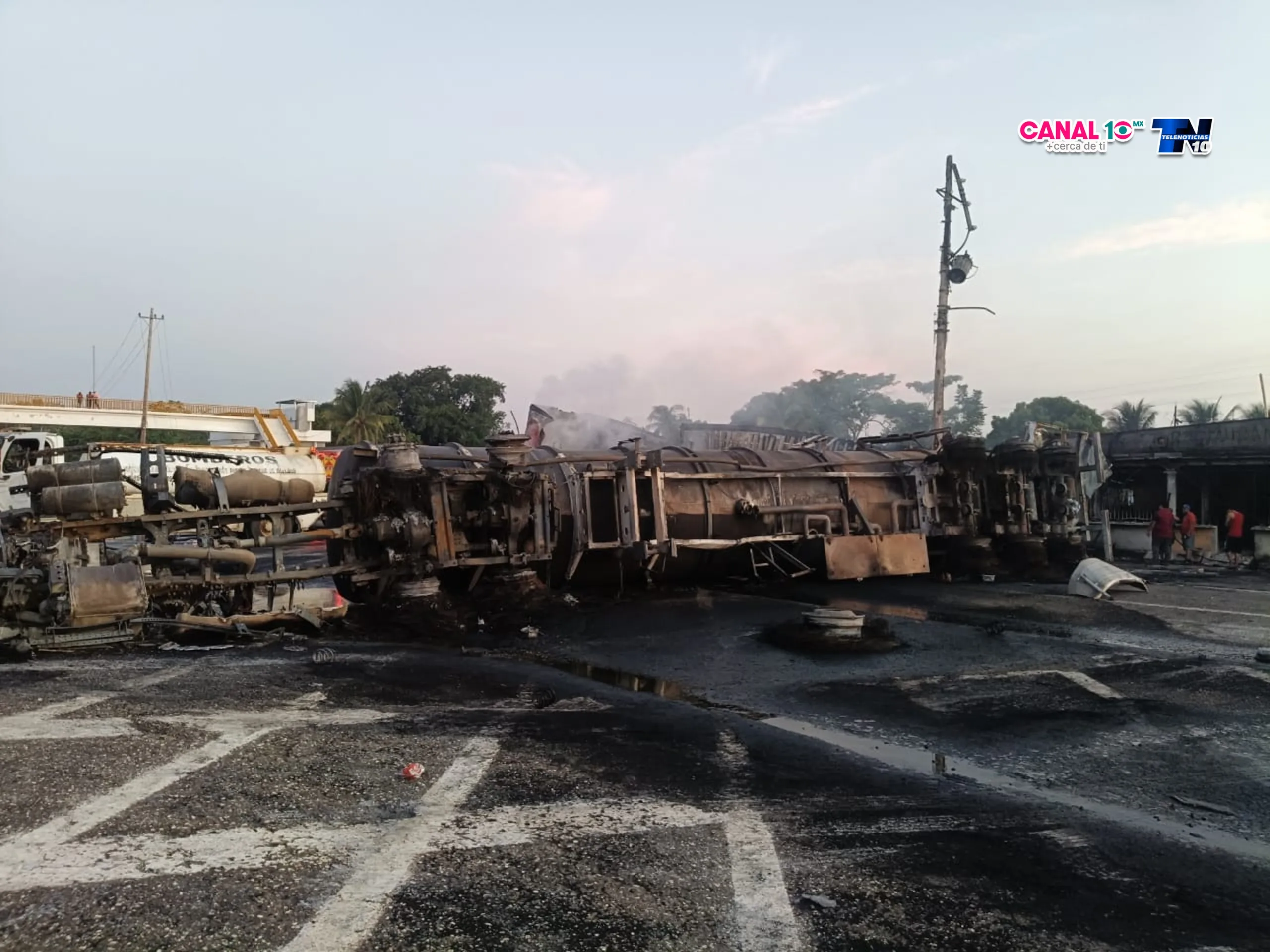 Tabasco.- Luego de más de 9 horas de labores ininterrumpidas, fue controlado y sofocado el incendio provocado presuntamente por el choque de dos pipas a la altura de El Castaño, sobre la carretera Cárdenas–Villahermosa.