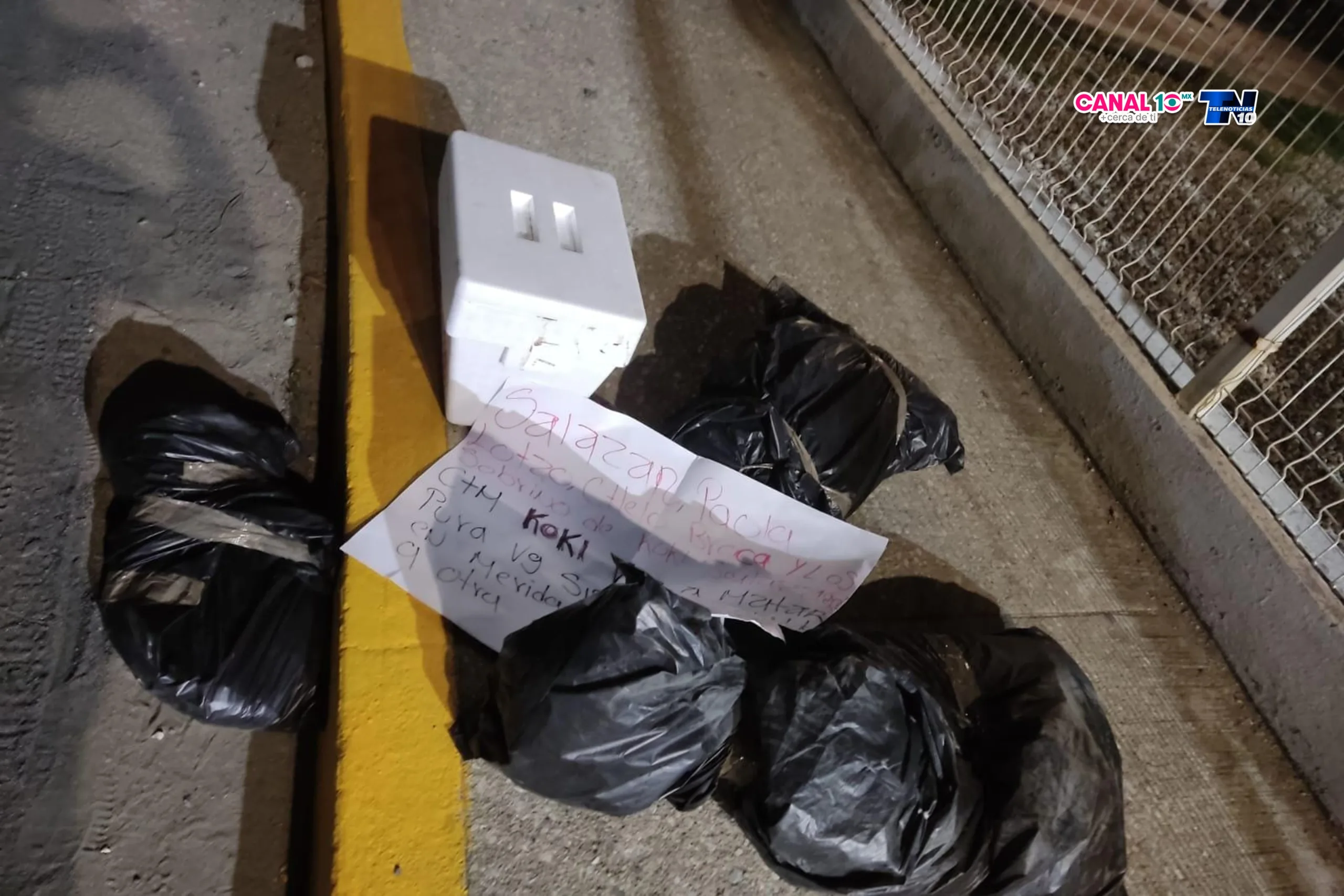 Estos hechos se registraron en punto de la 01:30 horas sobre la calle Uno frente al cárcamo, lugar donde fueron halladas varias bolsas de color negro encintadas, con restos humanos de un masculino y en una nevera una cabeza encintada, en algunos minutos se movilizó la Policía Estatal Preventiva, Guardia Nacional y el Ejército Mexicano.