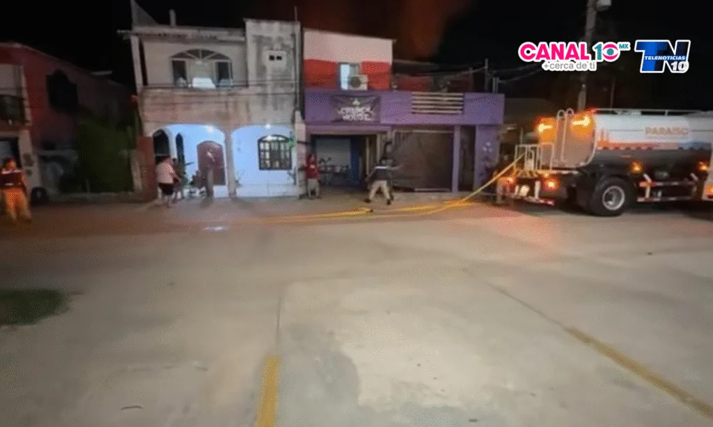 Un incendio ocurrió anoche en un taller mecánico en la calle 5 de Mayo, Paraíso, debido a una chispa que se extendió a filtros. Vecinos alertaron a las autoridades y Protección Civil
