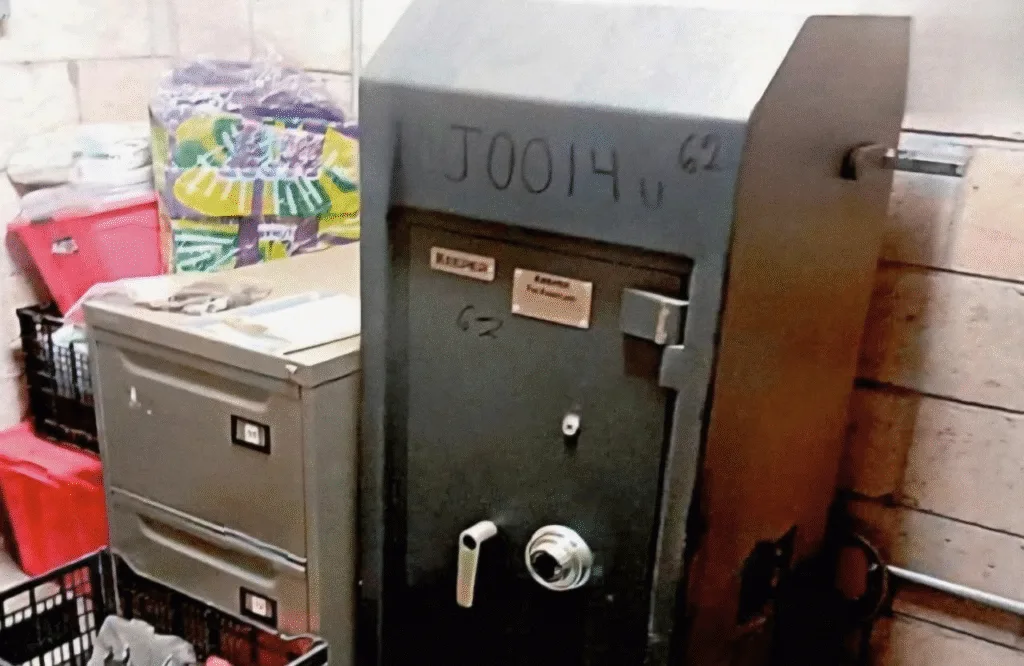 El área de la caja fuerte mostraba daños severos. La cerradura y la estructura fueron forzadas, permitiendo a los delincuentes apropiarse de todo el efectivo disponible, también otros objetos de valor d la oficina donde estaba la caja fuerte fueron sustraídos.