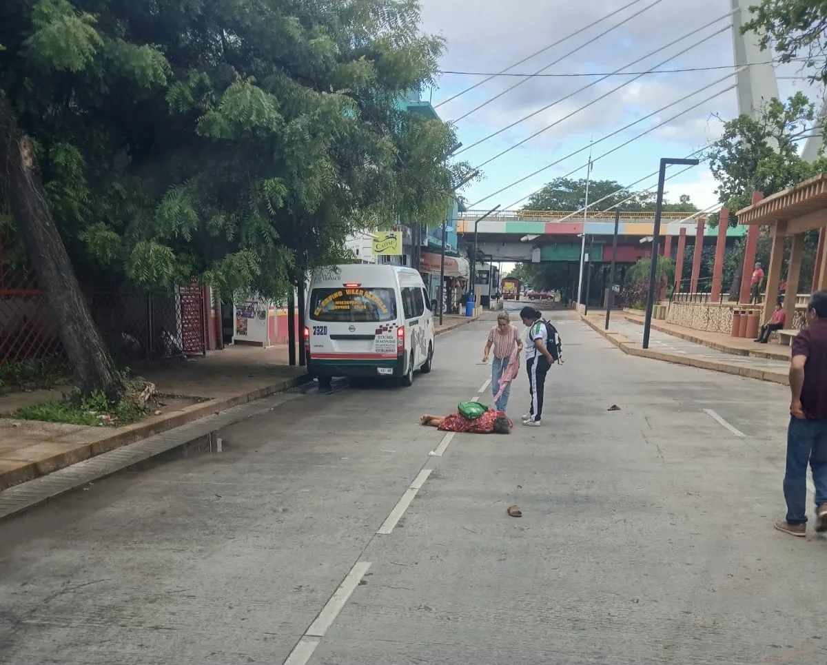 Mujer de la tercera edad fue atropellada en el Malecón de Villahermosa, el conductor abandonó la combi.