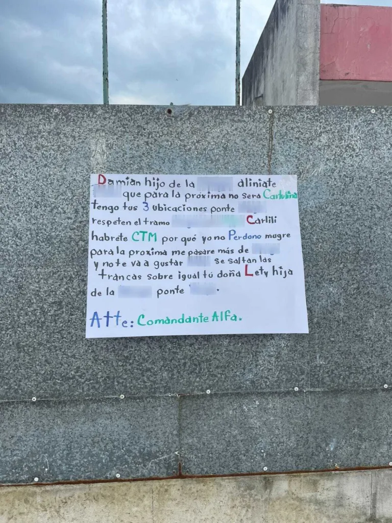 El lugar permaneció resguardado, sin embargo, en lo que se llevaban a cabo operativos en las zonas, otra movilización ocurrió cerca del poblado Astapa carretera Jalapa – Villahermosa en donde reportaron detonaciones de arma de fuego por sujetos en una motocicleta y una camioneta que habían dejado una cartulina con amenazas en contra de algunas personas dedicabas a la venta de estupefacientes, está firmada por un supuesto comandante “Alfa”, los casquillos presuntamente de un calibre 9 mm y el objeto fueron retirados y trasladados al Centro de Procuración de Justicia en dónde se notificó que también habían privado de la libertad de una mujer en el mismo poblado.