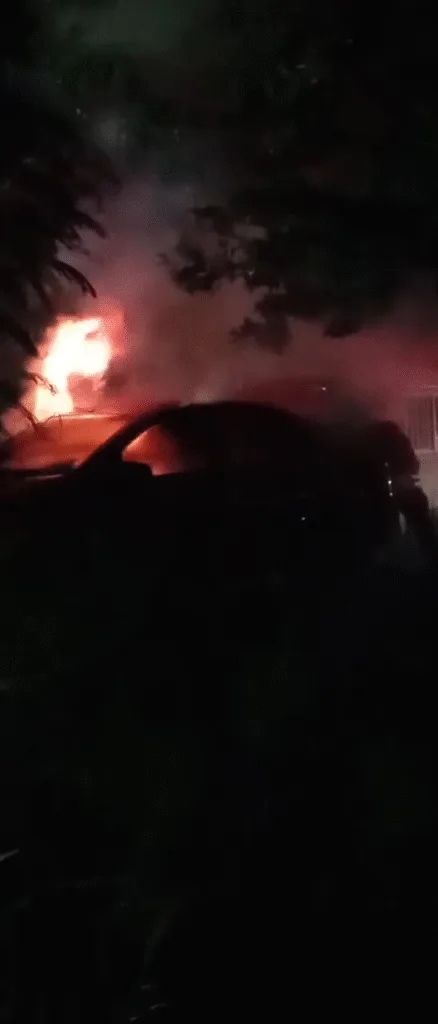 Sujetos en motos tiran ponchallantas, disparan al aire e incendia un vehículo en Gaviotas Sur