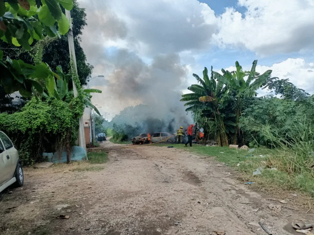El accidente se reportó alrededor de la 1 de la tarde, residentes de la zona reportaron que un indigente pasó por el lugar y prendió fuego al pastizal, esto alcanzó a tres vehículos que se encontraban estacionados, en minutos se vieron envueltos en llamas.