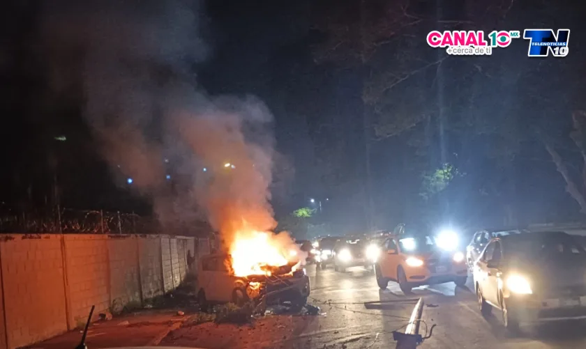 Villahermosa, Tabasco.- Una camioneta se incendió la noche de ayer en un accidente qué ocurrió sobre el periférico de la Ciudad de Villahermosa a la altura del administrativo de Pemex se ubica cerca del fraccionamiento Carrizal en el municipio de Centro.