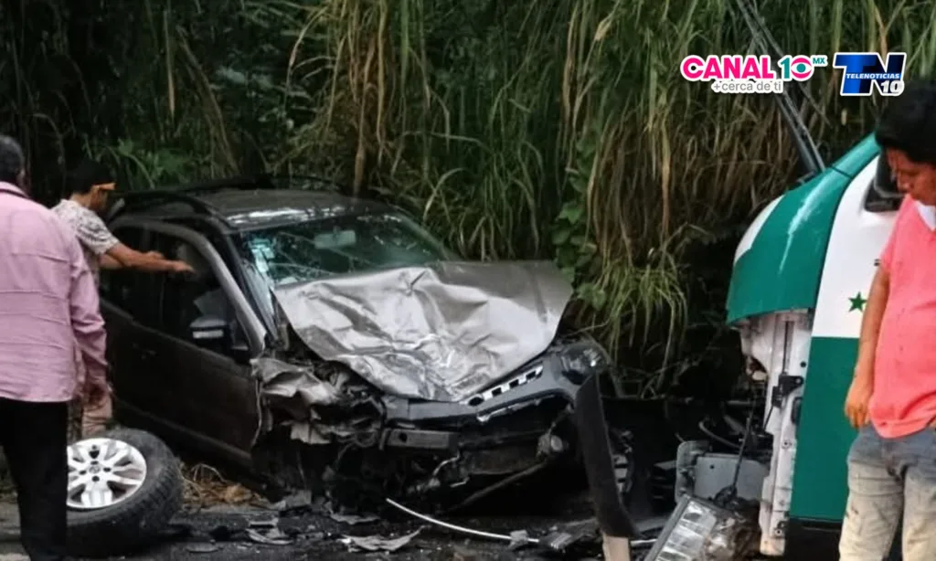 Accidente entre unidad de transporte y auto particular en Oxolotán