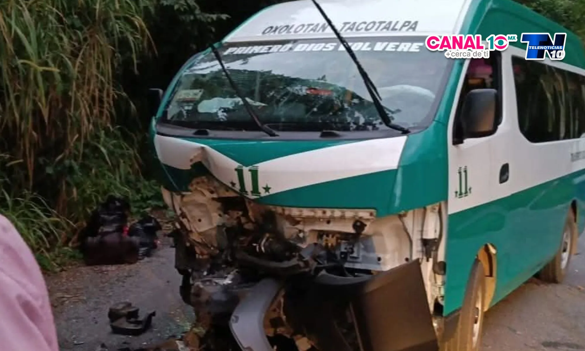 Aparatoso accidente ocurrió en el municipio de Tacotalpa, entre una van del servicio público y una automóvil particular en la carretera Tacotalpa-Oxolotán.