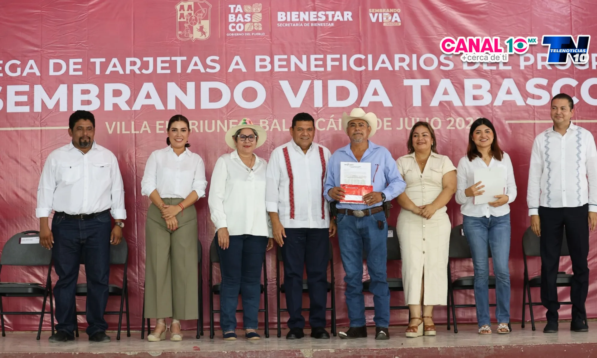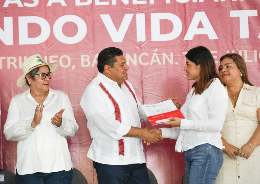 En el Centro Social de la Villa El Triunfo, el Gobernador Javier May Rodríguez encabezó la entrega de los plásticos que acreditan la integración de sembradoras y sembradores de ambos municipios a la estrategia estatal que impulsa la creación de oportunidades laborales permanentes.