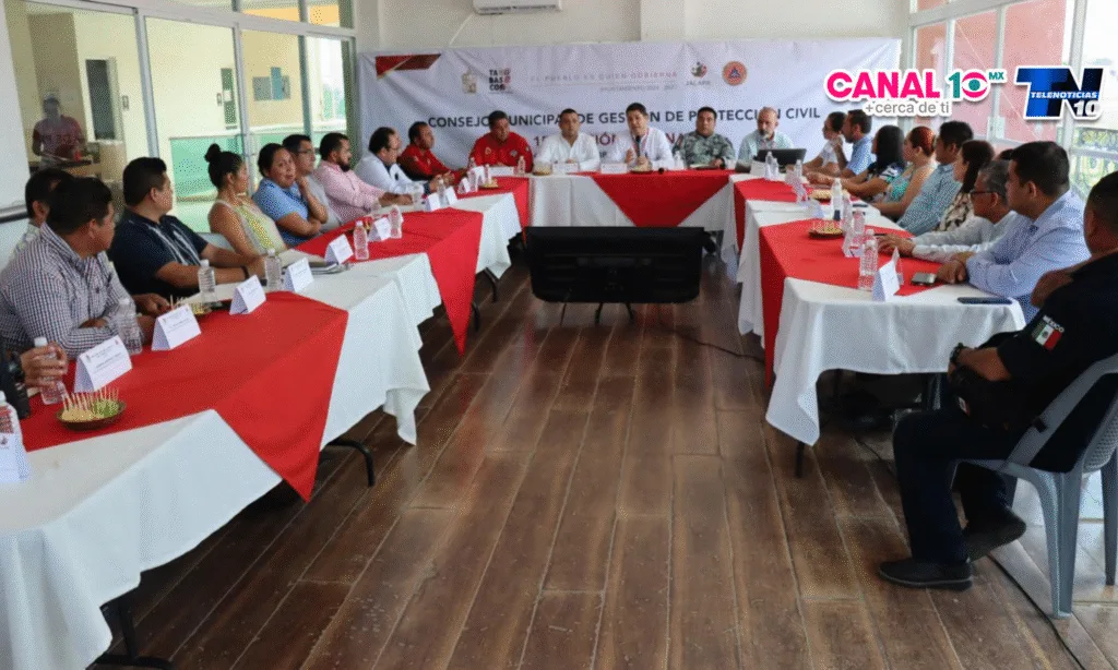 Jalapa, Tabasco.- Con el objetivo de fortalecer las acciones preventivas y mejorar la capacidad de respuesta ante posibles afectaciones por lluvias intensas y ciclones tropicales, se llevó a cabo la Sesión del Consejo Municipal de Protección Civil de Jalapa, encabezada por el presidente municipal José Manuel Hernández Pérez.