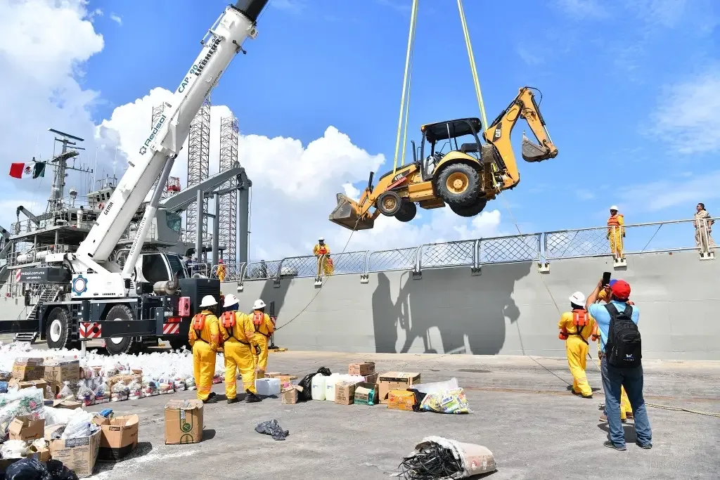 El cargamento zarpó desde el Puerto de Dos Bocas, en Paraíso, con destino al puerto de Tuxpan, Veracruz, y se compone de víveres e insumos básicos recolectados por la ciudadanía tabasqueña.