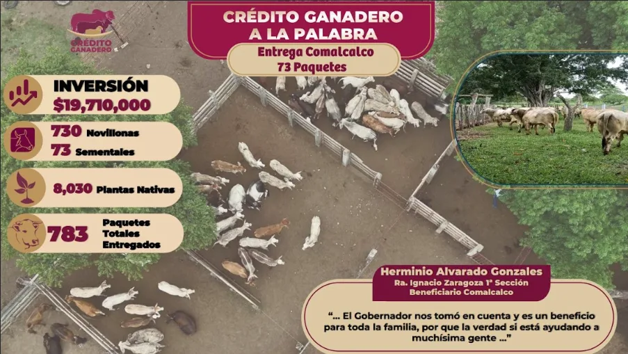 Subsecretario de Desarrollo Ganadero resalta que ya se entregaron 783 paquetes a productores de Macuspana, Emiliano Zapata y Comalcalco