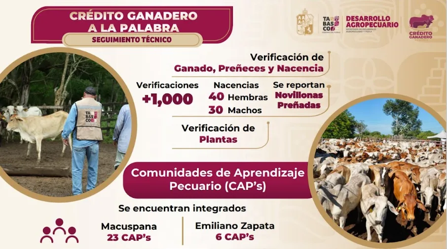 En este sentido, detalló que de ese número de cabezas ya se tienen registrados 70 nacimientos de becerros, correspondientes a 40 hembras y 30 machos, y se tiene el reporte de decenas de novillonas preñadas. De igual manera, señaló que los productores tienen el compromiso de regresar animales en distintos periodos.