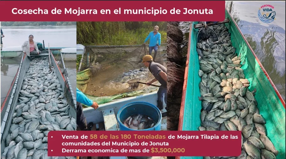 58 toneladas de mojarra con una derrama de más de 3.5 mdp es el inicio de cosechas de Pescando Vida
