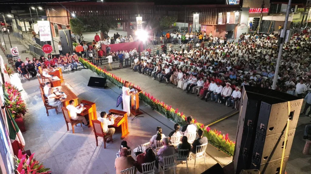 Acompañada por presidentes y presidentas municipales, servidores públicos, las y los beneficiarios con programas sociales y productivos que impulsa el Gobierno del Pueblo y público en general, Mari Luz Velázquez reconoció el liderazgo y apoyo continuo de Javier May para generar el desarrollo del municipio y su gente, con programas que genera bienestar y prosperidad a las familias, recuperan el campo y detonan la economía local.
