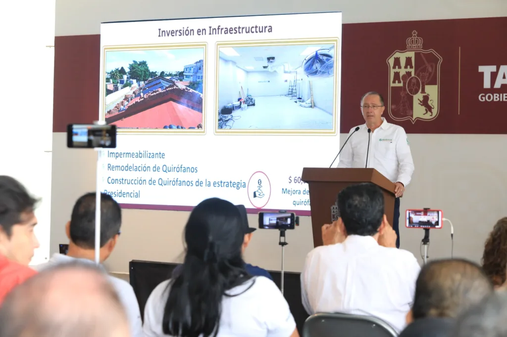 “Este es un compromiso presidencial. Se debe a la inversión en infraestructura que nuestra Presidenta otorgó al estado en específico en ese rubro de inversión en infraestructura, que fueron 60 millones de pesos y permitió la impermeabilización del Hospital Juan Graham Casasús, del Hospital del Niño y de la Mujer”, apuntó, al referir que de igual manera se están rehabilitando los quirófanos de los hospitales comunitarios de Emiliano, Zapata y Nacajuca, entre otros.