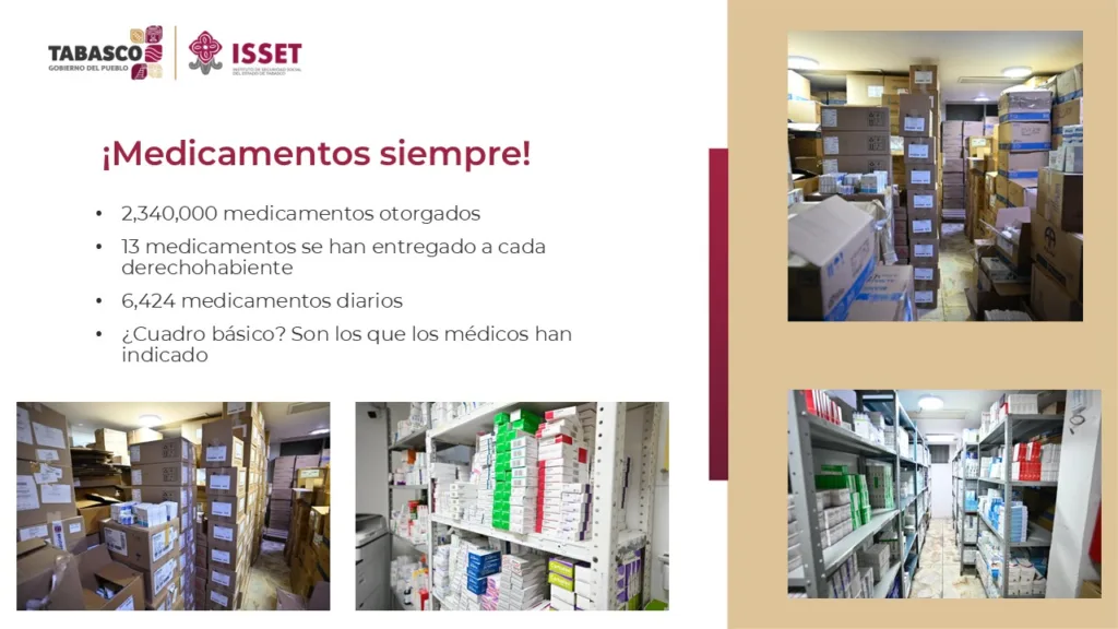 “Hoy en el primer nivel de atención, el grupo de claves de medicamentos son 147 en total, antes habíamos alcanzado incluso a tener hasta 800 claves en cada centro de salud. Imagínense el desperdicio, la caducidad y la pérdida económica para el Estado. Antes se tardaba hasta un mes, dos meses la distribución de ciertos medicamentos, ahorita se hace en cinco días, en una semana y se trabaja con muchas manos, incluyendo las manos del IMSS-Bienestar, de la Secretaría de Salud y del Estado de Tabasco para poder lograr esto con las Rutas de la Salud.”
