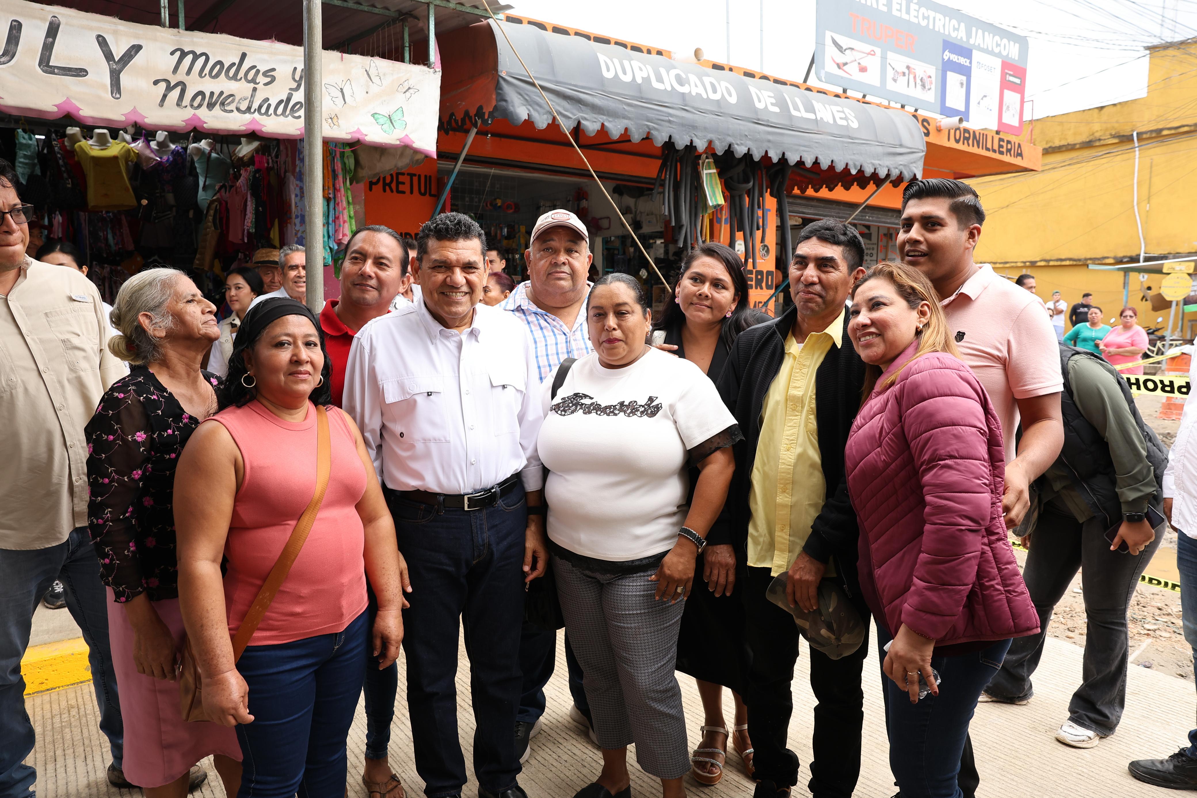 Javier May inspeccionó este miércoles en la localidad la pavimentación de cuatro calles con concreto hidráulico, como parte de proyectos que incluyen la construcción de más de 3 mil metros cuadrados de guarniciones y banquetas, la sustitución de 1 mil 777 metros lineales de la red de drenaje sanitario, y la renovación de 570 metros lineales de la tubería de agua potable.