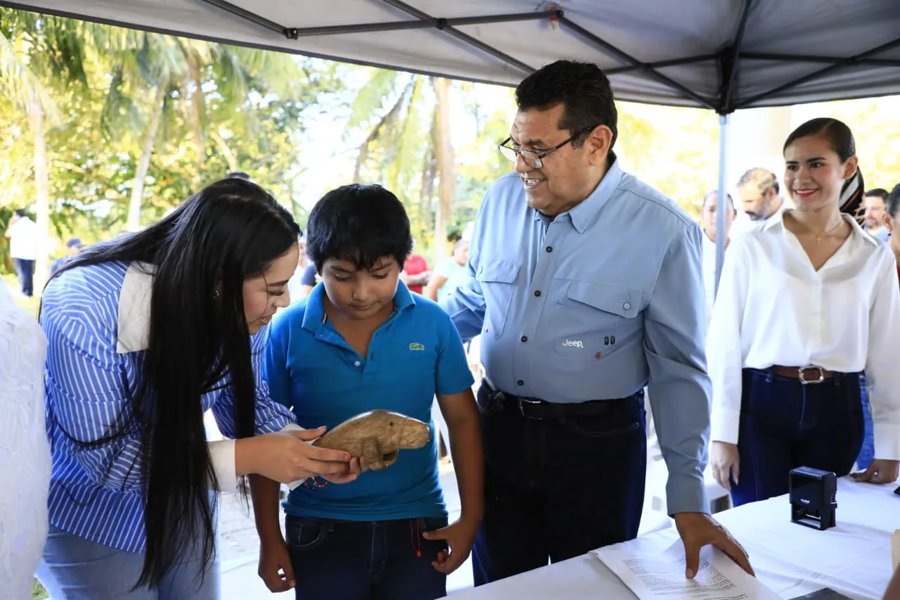 Mario está sereno, es la tranquilidad que da el hacer el bien y sentirse agradecido. Con el don de gente de los pantanos, entrega al Gobernador su pequeña pero hermosa obra. Javier May Rodríguez la sostiene en sus manos conmovido por el talento del pequeño artesano de gran corazón. “Muchas gracias por el programa que nos ha dado y felicidades por ser el Gobernador”, dice el niño antes de despedirse.