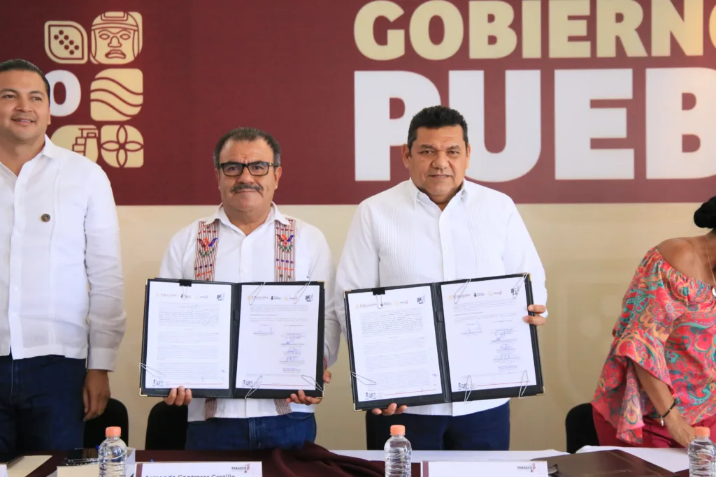 Tabasco. – El mandatario estatal, Javier May Rodríguez junto al director general del Instituto Nacional para la Educación de los Adultos (INEA), Armando Contreras Castillo signaron el convenio de colaboración Alfabetizar para el Bienestar, mediante el cual Tabasco se suman al esfuerzo del gobierno de México, encabezado por la Presidenta Claudia Sheinbaum Pardo, para reducir el rezago educativo en el país y en el estado.