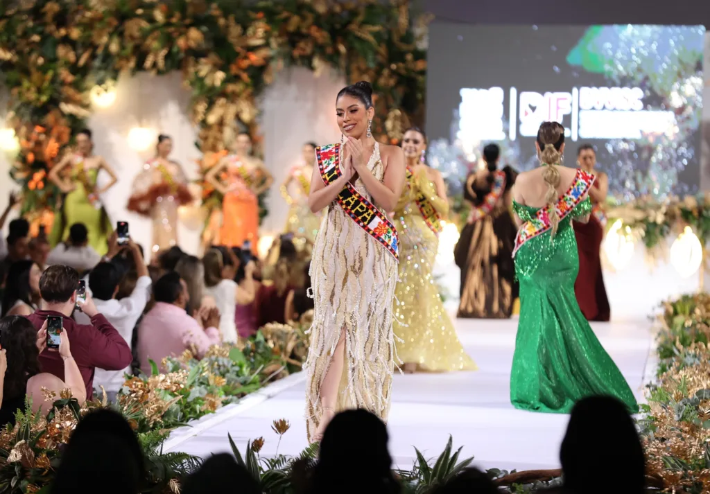 Villahermosa, Tabasco.- Una auténtica noche llena de glamour, vanguardismo, elegancia y solidaridad se vivió en el Centro de Convenciones, sede del Desfile de Modas “Diosas del Cacao 2025”, organizado por el Sistema DIF Tabasco a beneficio de los grupos de atención prioritaria y en que las 17 embajadoras dieron muestra de su talento y habilidades en pasarela al portar hermosas creaciones tabasqueñas.