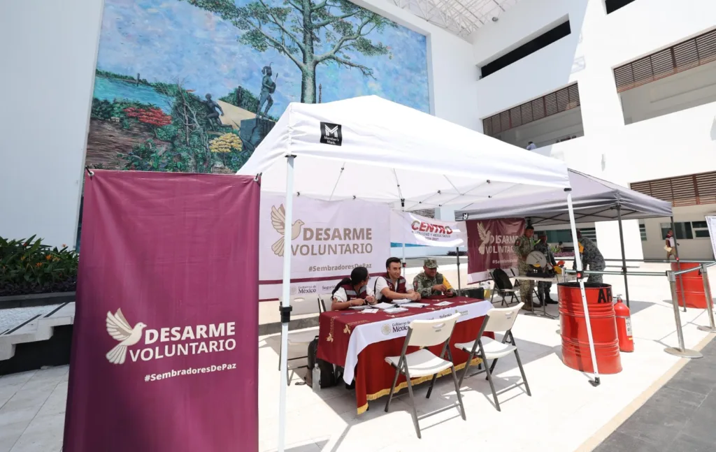 Villahermosa, Tabasco.- Con la instalación del Módulo de Desarme Voluntario en el patio central del Palacio Municipal de Centro, que operará del 14 al 17 de mayo, el Gobierno del Pueblo en coordinación con la Secretaría de Seguridad y Protección Ciudadana (SSPC) federal y el Ejército Mexicano (Defensa), continua con la estrategia “Sí al Desarme, Sí a la Paz” para retirar armas de fuego de los hogares y de las calles de Tabasco.