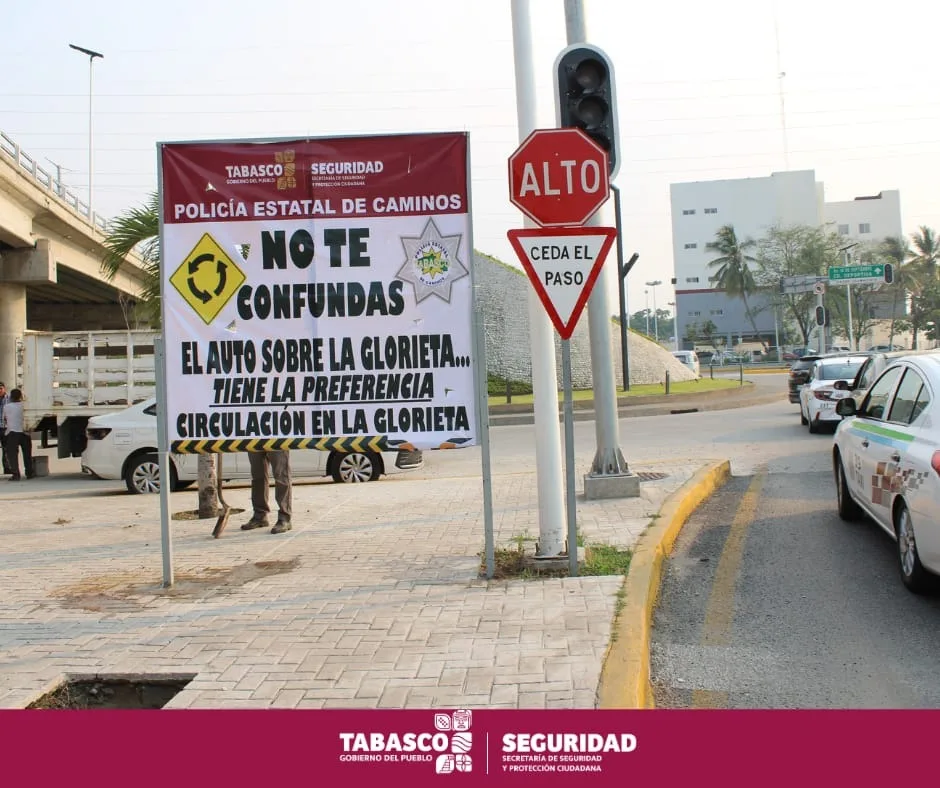 Se recuerda a los automovilistas que ingresan desde la carretera a Teapa, avenida Usumacinta, el centro de la ciudad o el Periférico, que los vehículos que ya circulan dentro de la glorieta tienen preferencia.