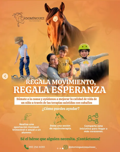Estefanía Domínguez, presidenta de Equinoterapia Domínguez A.C., destacó la importancia del centro al informar que brindan terapia asistida con caballos a niños con diagnósticos como autismo, Trastorno por Déficit de Atención e Hiperactividad (TDH), Síndrome de Down, parálisis cerebral y retrasos en el neurodesarrollo. La equinoterapia funciona como una terapia complementaria al tratamiento médico que ya reciben los menores.